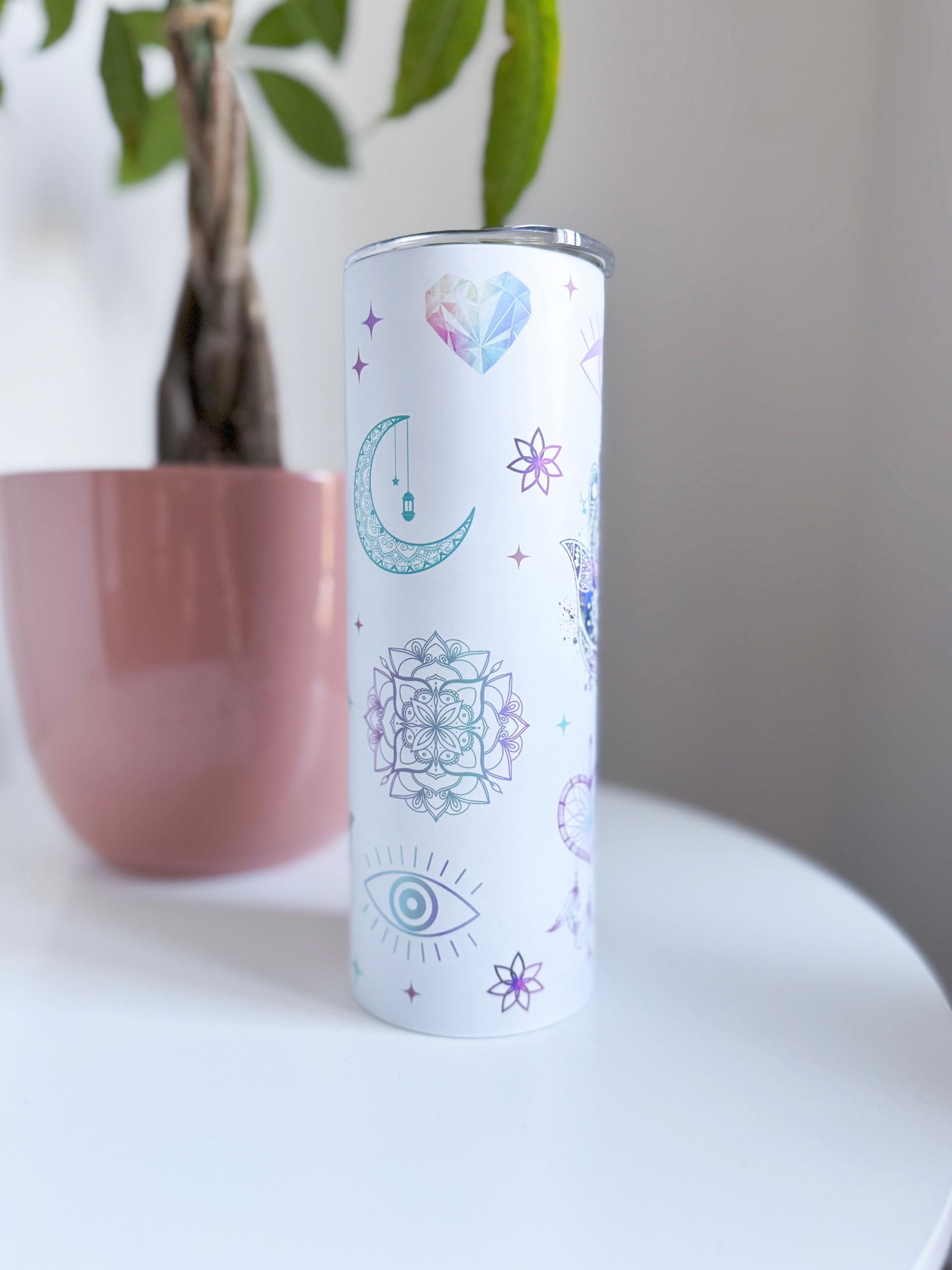 Our 20 oz tumblers keep your beverages hot for 12 hours and cold for 24 hours. Comes with stainless steel straw.